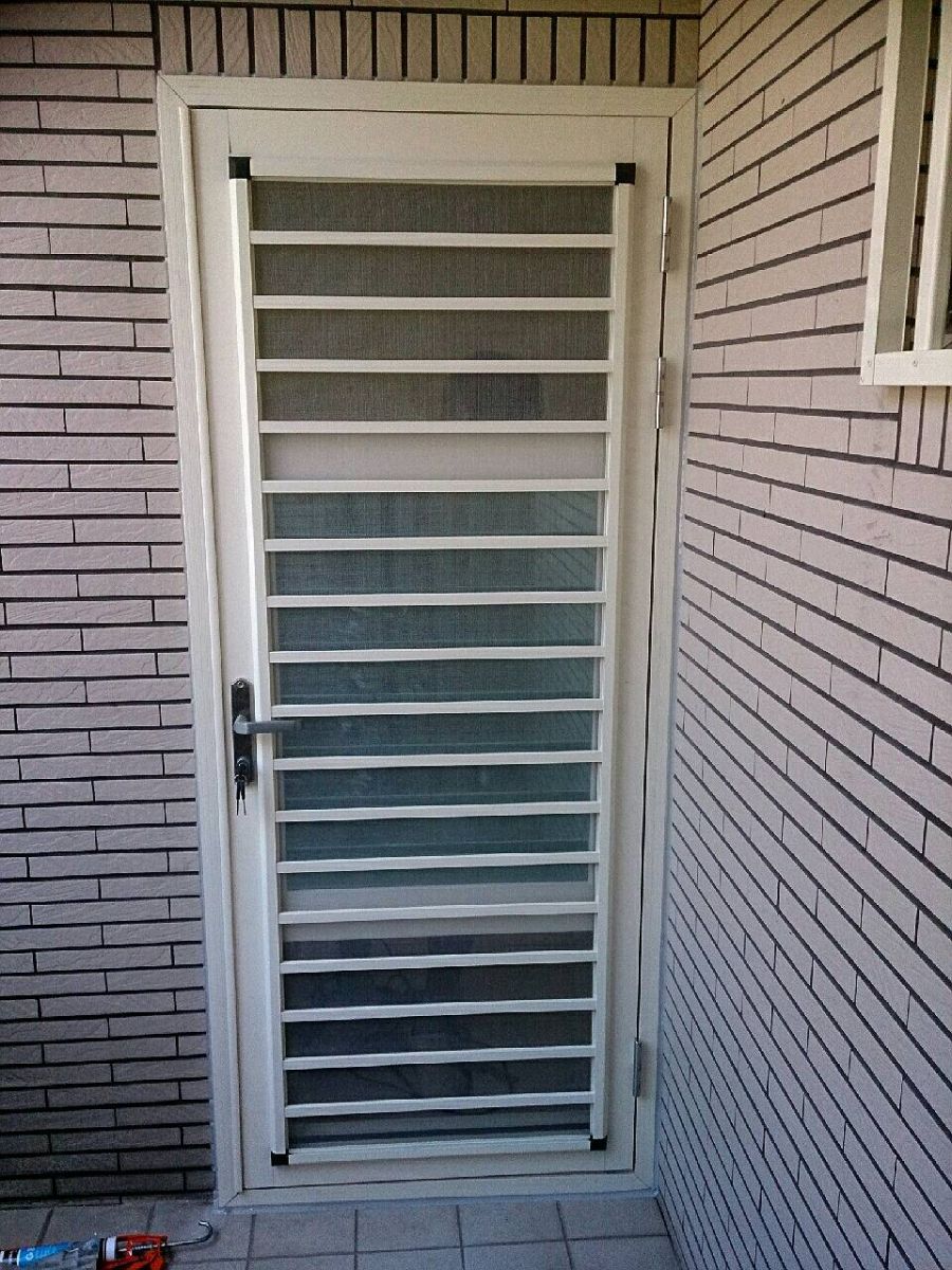 優點:1.廚房門具三項功能之設備,即具有門扇、紗窗及防盜 飾條合為一體之完整性。 2.通風內扇設有夾檔裝置、二段調整、三項開啟, 讓新鮮空氣自然對流,安全舒適。